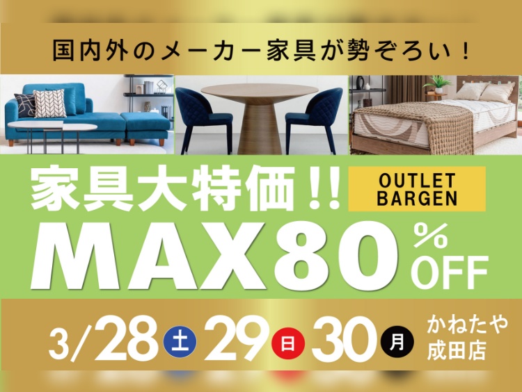 家具メッセバザールでは安心・納得のご優待割引、最大80%OFFのアウトレットコーナーなど、